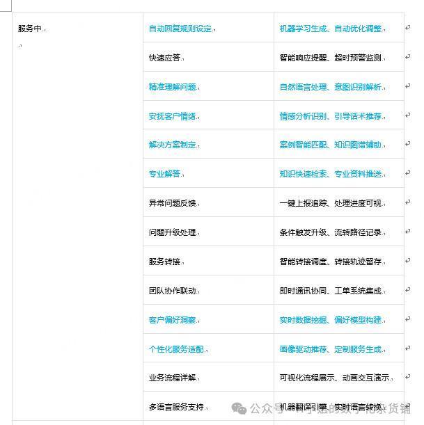 模型训练:rag、提示词工程和微调是模型训练迭代的主流方式,根据训练时间、成本和场景选择,通俗的来说,rag能快速在大量的行业知识和特定场景信息里去查找相关内容,提示词是让智能客服更好的理解“需求”,把话说的更能让“机器人”理解,微调以预训练大模型为基础,用特定领域或场景数据再训练,让模型更贴合特定场景。像电商平台用自身数据微调,使模型回答更精准。虽需一定训练时间和计算资源,成本较高,但效果好 。任务自动化与闭环反馈:实现任务的自动化流转和闭环管理,当机器人无法回复、顾客要求转人工或遇到特定问题时,及时将任务转接给人工客服,并进行数据分析和复盘,不断优化运营流程和服务质量。用户满意度调查与客服质检:定期开展用户满意度调查,收集用户对智能客服服务的反馈和评价,同时对客服服务进行质检,评估服务质量,及时发现并改进问题,提升整体服务水平。