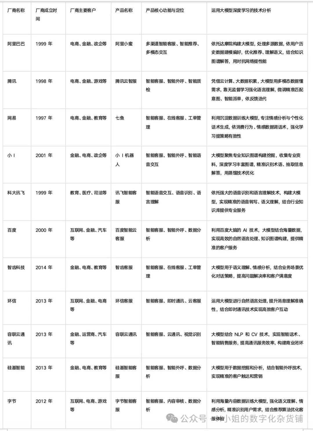 运营类指标:坐席签入/签出统计、天/周/月接通数、接通趋势、平均响应时长、外呼接通数、外呼接通率、线索转化率、关单率、问题解决率、坐席利用率、客户重复咨询率、跨部门业务对接响应效率衡量ai智能客服的运营类指标:点击率、接通率、人工转接率、识别准确率(订单问题、问题识别、问题推荐)、问题解决率、自主问题解决率、关单率、并发处理能力、知识库覆盖率、智能客服闲置时长占比、智能客服话术匹配准确率三、ai智能客服行业的主要厂商和产品