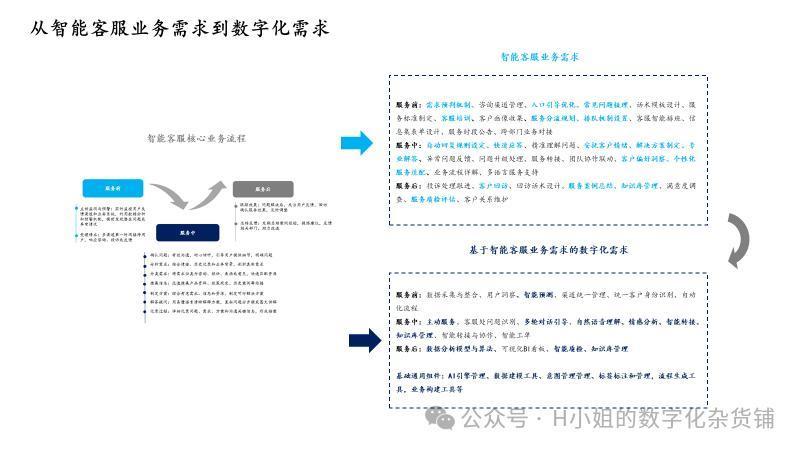 基于此,我们至少可以从两大核心视角进行深入思考:一是从用户旅程出发,二是从智能客服管理的角度,明确人工智能应用的重点场景,即并非所有场景能完全适用人工智能,挑选出重点场景方向,才能事倍功半。